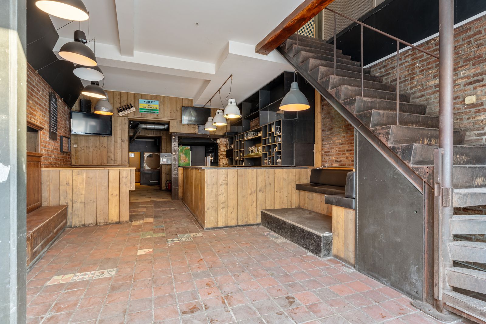 Dit cafe beschikt over een keuken, kelder en aparte toiletten. Er zijn ook 3 kamers verbonden aan het cafe.
